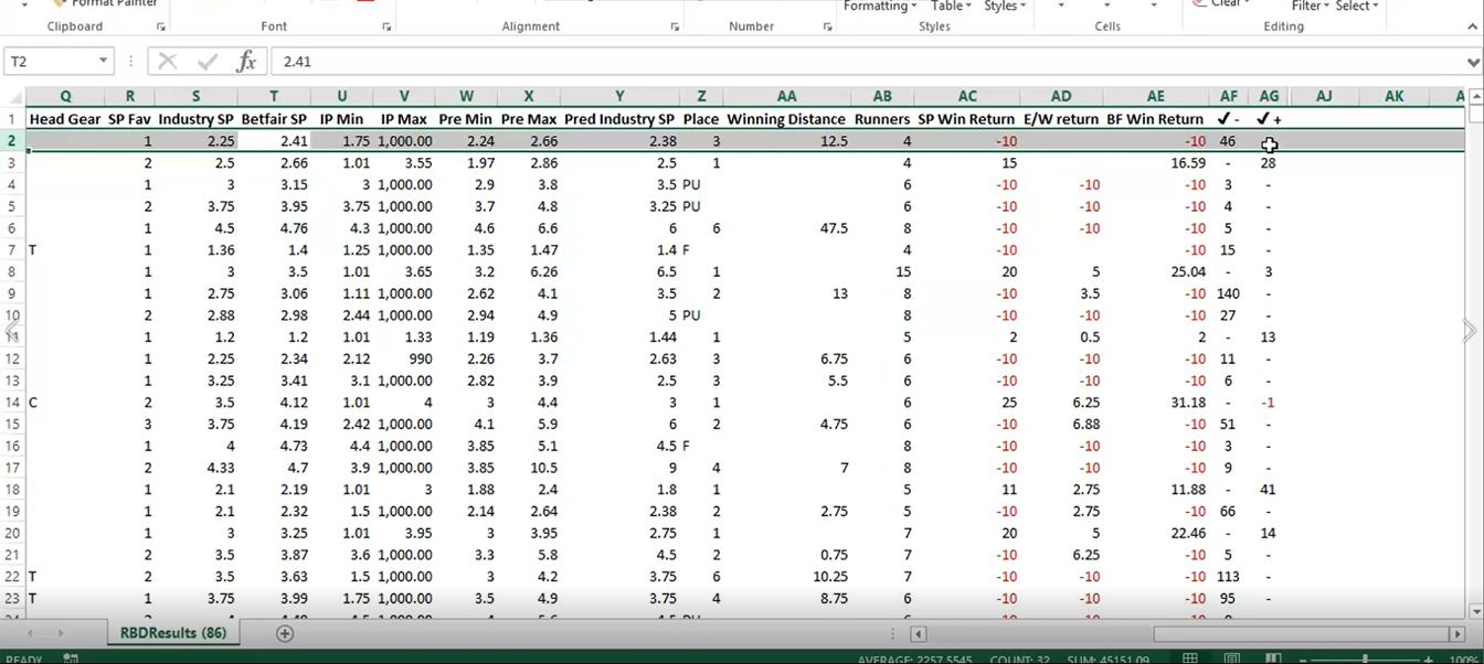 The summary table provides an overview of the races that have met your desired criteria. The profit / loss figures are the result of backing or laying horses at level stakes (10 units to win and 10 units each way).