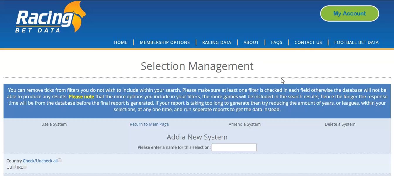 A search error may occur if you have not completed the tick box selection (for instance you have not selected any distances, classes or race courses) within your search.